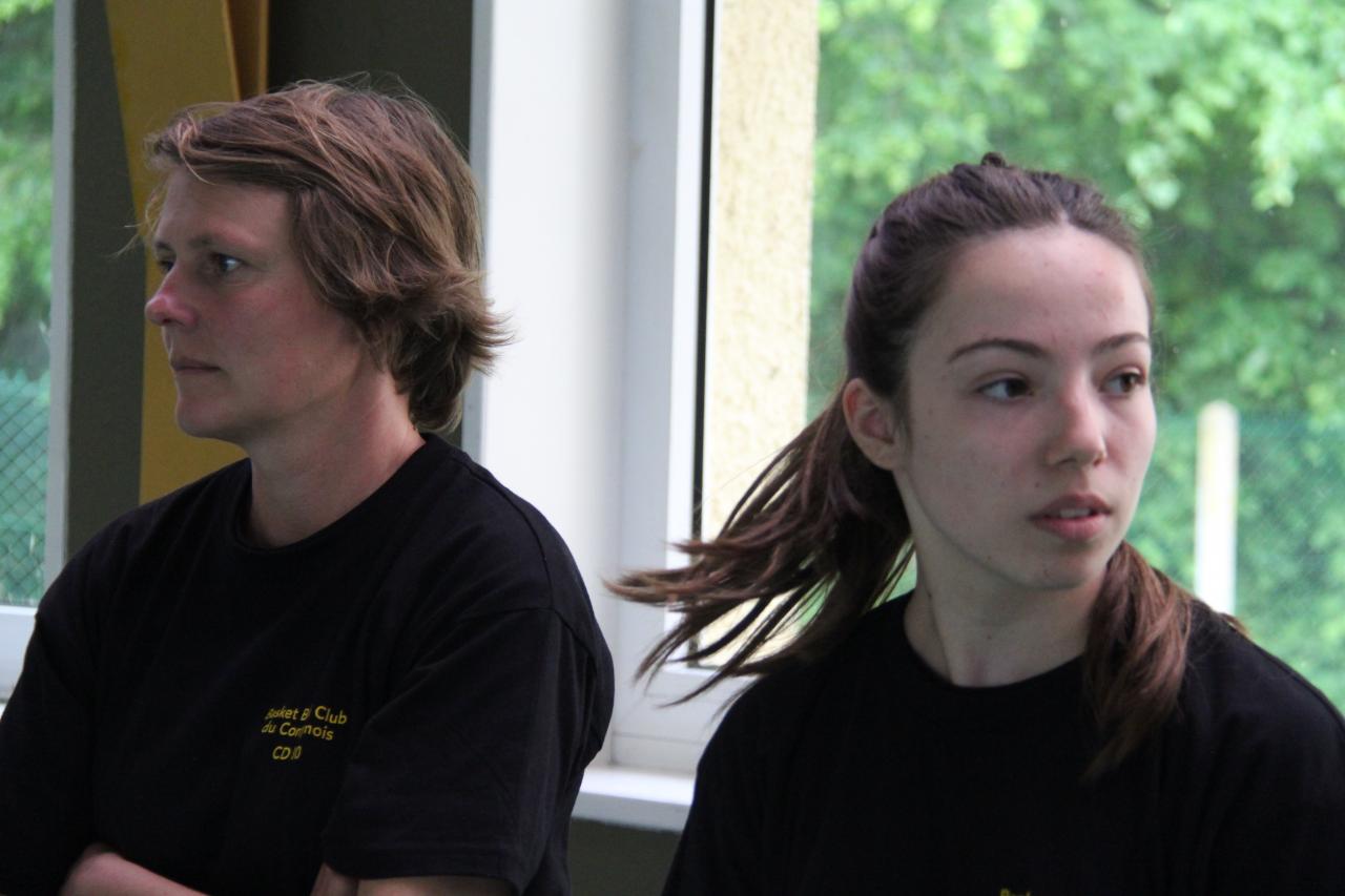Bénédicte (assistante-coach) et Inès (joueuse en U13 blessée) ont suivi le match du banc de touche.