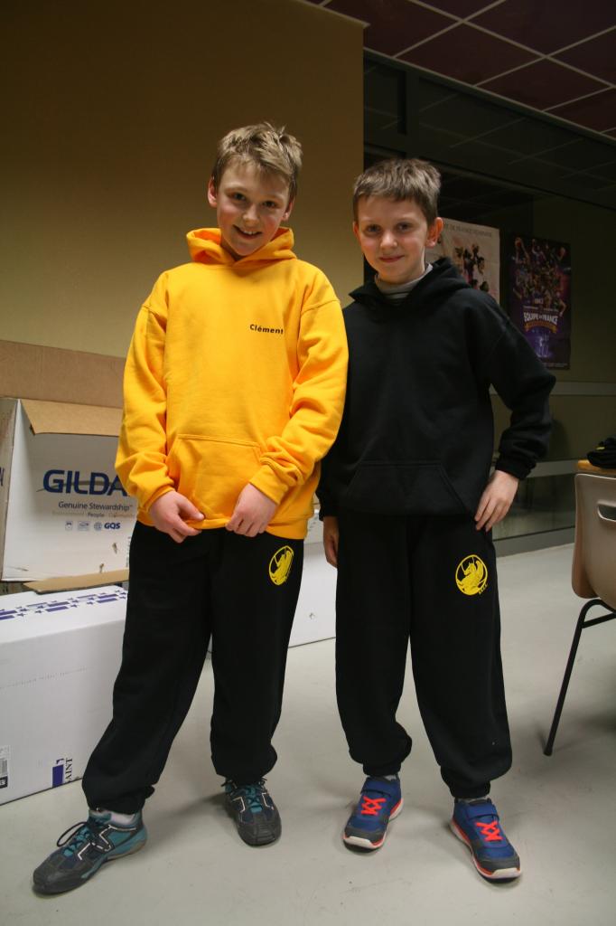 Clément (à gauche) et Baptiste (à droite) posent avec les nouvelles tenues du club. Sympa, non ?