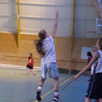 C'est au tour d'Inès d'attaquer le panier sous le regard d'Emma.