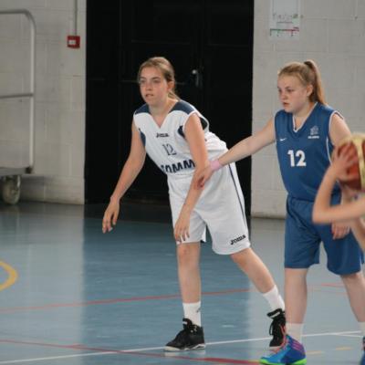 Jeanne tire un lancer-franc après avoir subi une faute.