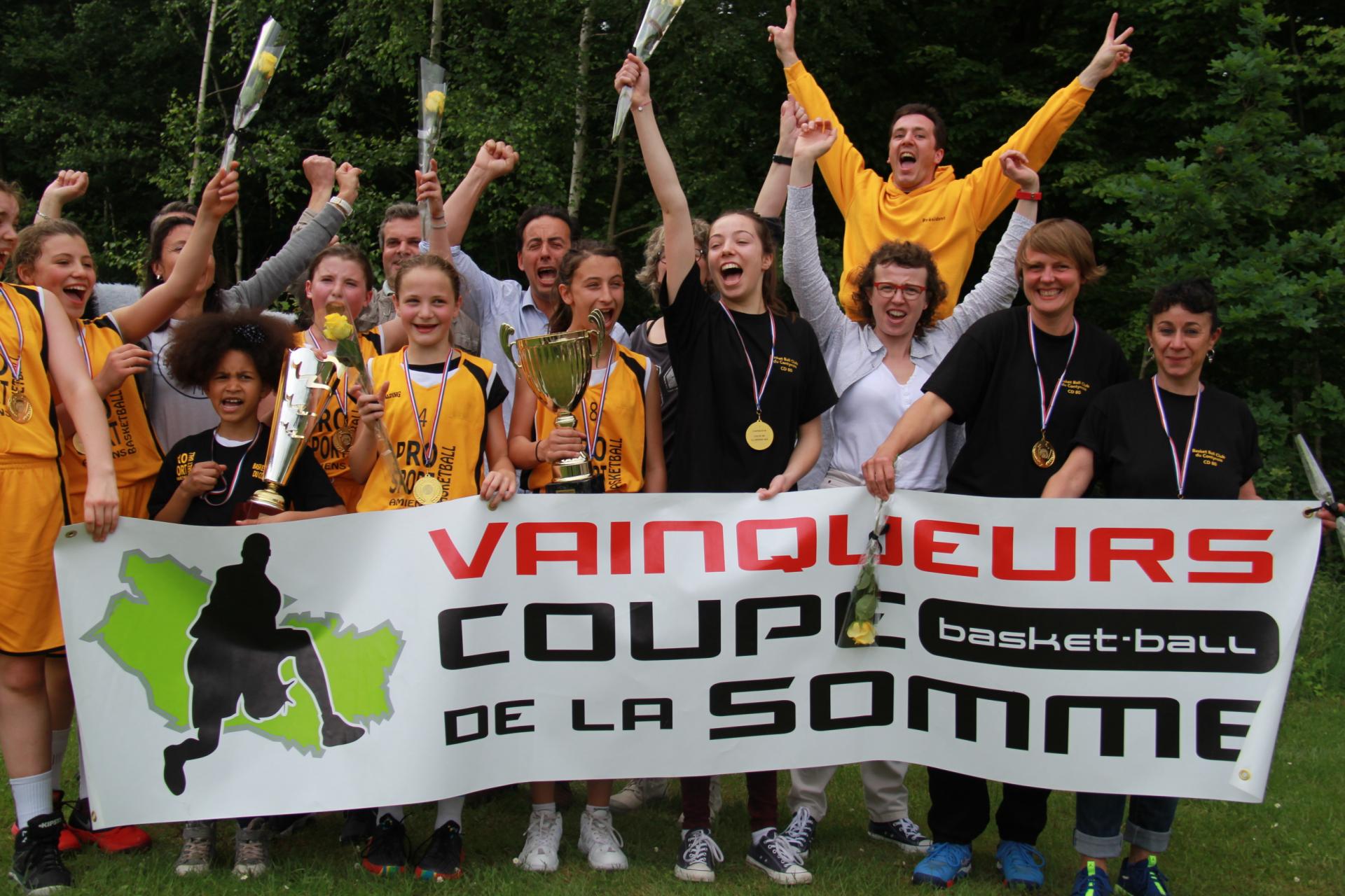 - pour la catégorie Benjamines (encadrée par Valérie et Bénédicte), nous avons eu 11 filles qui ont participé au championnat inter départemental (Aisne-Oise-Somme). Elles se sont classées à la 1ère place à l'issue de la première phase du chmapionnat et ont pu participer ensuite au championnat 1ère division où elles sont allées chercher la 3ème place après un très beau parcours. Ce groupe a réalisé un travail important et s’est vu récompensé de ses efforts en remportant la finale de la Coupe de la Somme. Plusieurs Benjamines du BBCC ont été retenues en équipe de Somme cette saison.