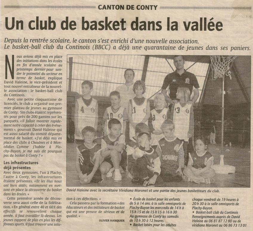 Article du Bonhomme Picard rédigé à l'occasion de l'organisation par le Basket Ball Club du Contynois des Finales féminines U13 et U15 de la Coupe de la Somme.